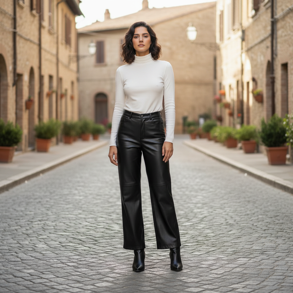 Pantaloni A Gamba Larga Lena | Pantaloni Donna Neri